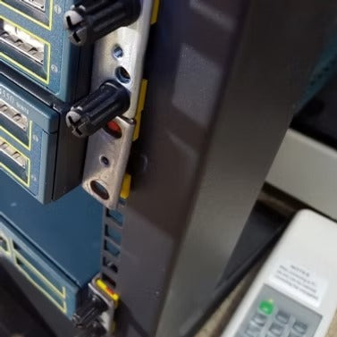 We performed testing at 38cm/15″ with the switches shown. Extra testing is being undertaken with equipment at deeper depths. Along with different RU spacing’s. Equipment over 38cm/15″ and 1RU, the leverage force can be quite extreme. In these cases, we recommend supporting your equipment at the rear if at all possible.