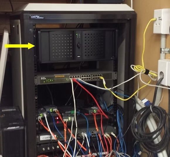 The Digital Video Recorder I tried to mount on my own in 2000 is still there mounted with cage nuts! And oh what a mess.
