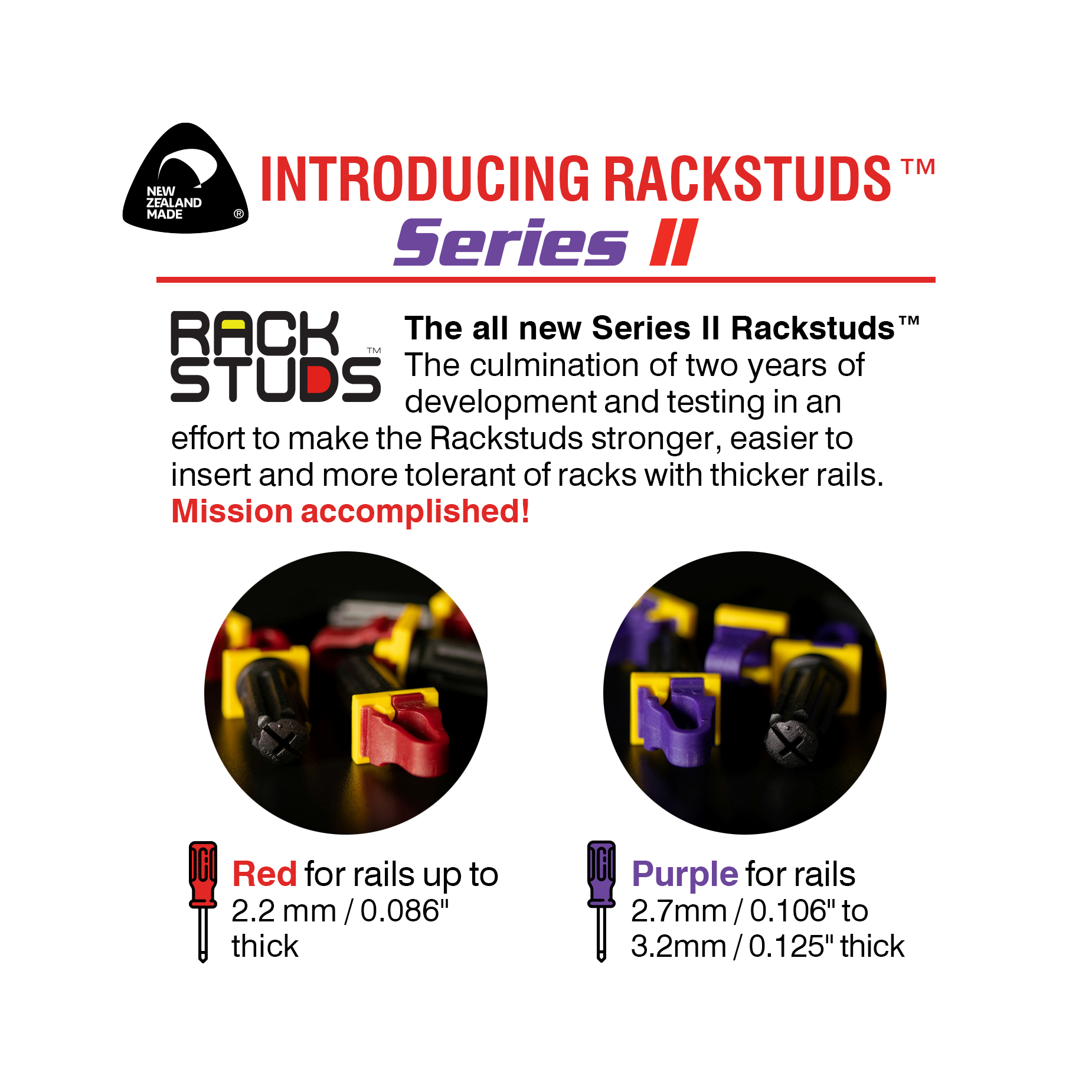 - Rackstuds Red 2.2: ≤ 2.2mm/0.086″ (or 14 gauge)